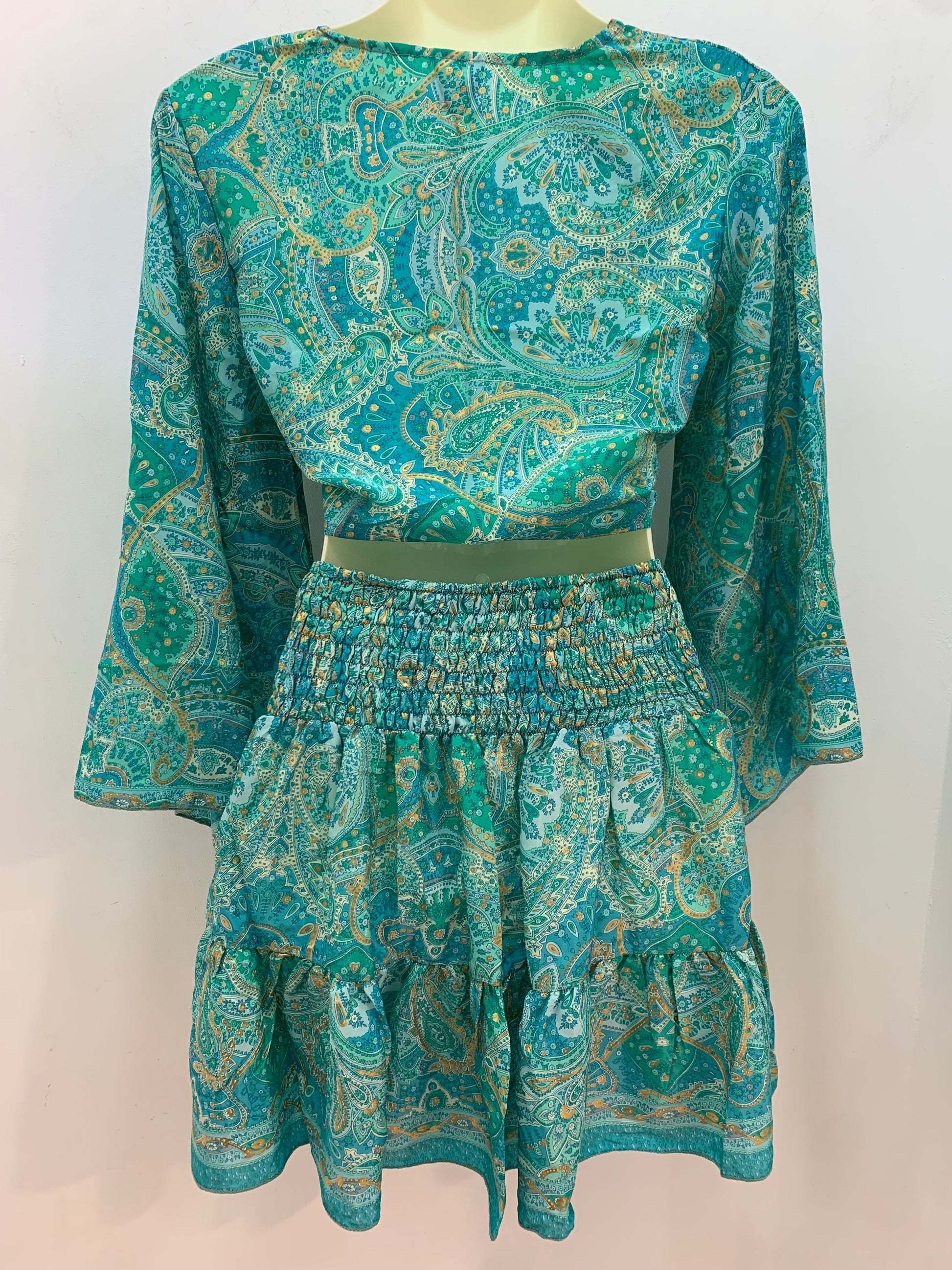Conjunto Corto 026 Falda y Top Turquesa y Verde