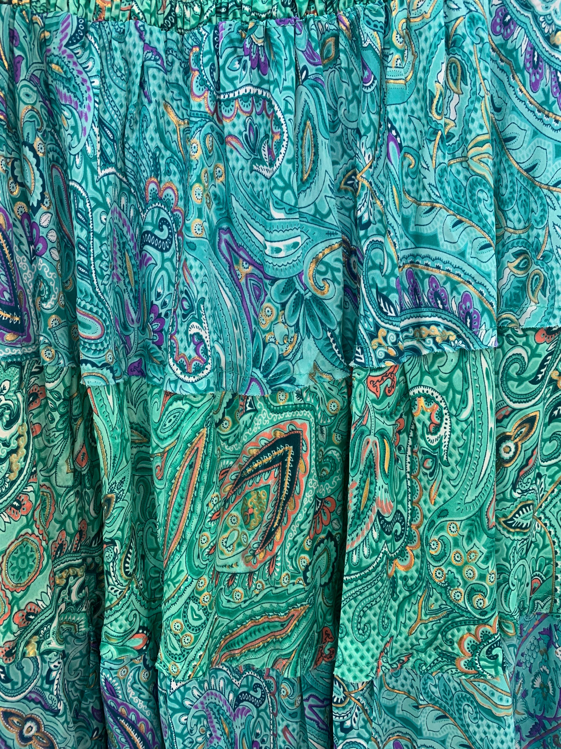 Falda con estampado y detalles en Dorado con cintura elástica.